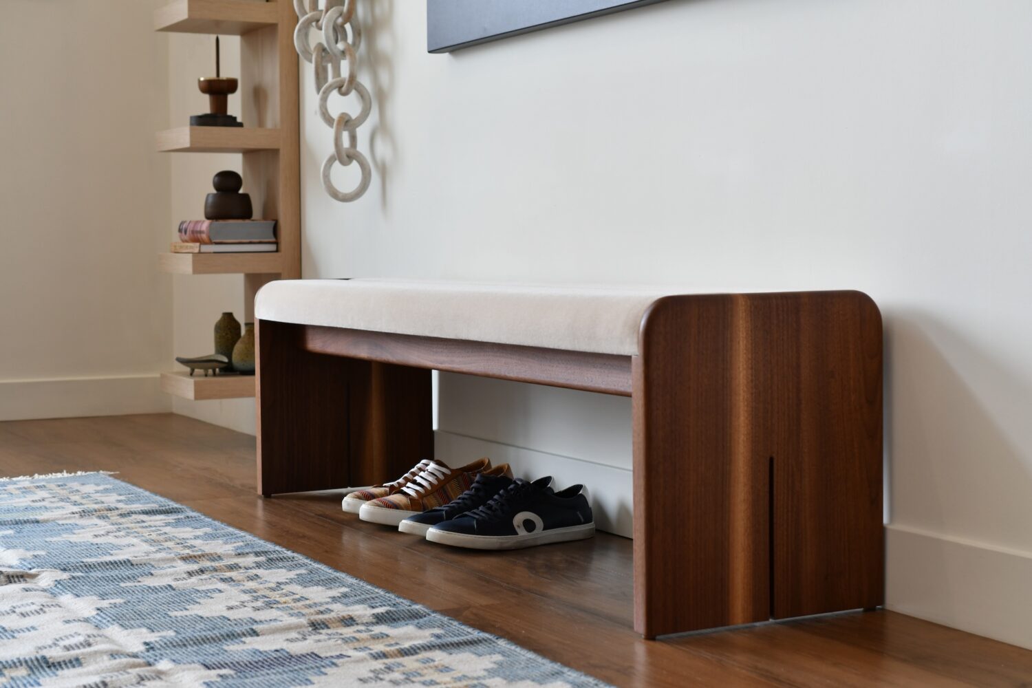 The Iris Bench conveys Scandinavian design with clean lines and timeless simplicity. Its solid wood frame offers warm texture, while the plush seat adds a soft touch. Versatile and stylish, this bench enhances any living spaces with elegance.